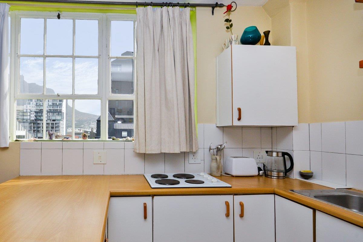 Enjoy breath-taking views of the magnificent mountain from the comfort of your own home, creating a serene and picturesque living environment. The open plan kitchen is equipped with a stove, washing machine, cutlery, and crockery.