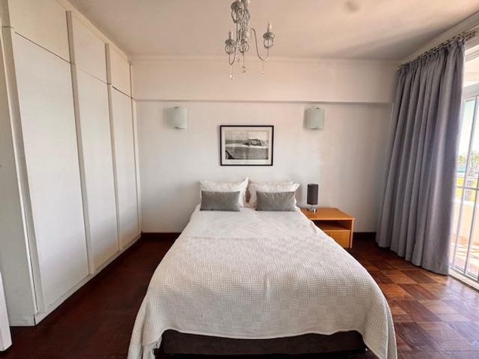 Wake up to ocean panoramas on Beach Road, Sea Point — furnished, open-plan lounge and dining flowing to a large balcony with parquet floors and two bedrooms, two bathrooms.