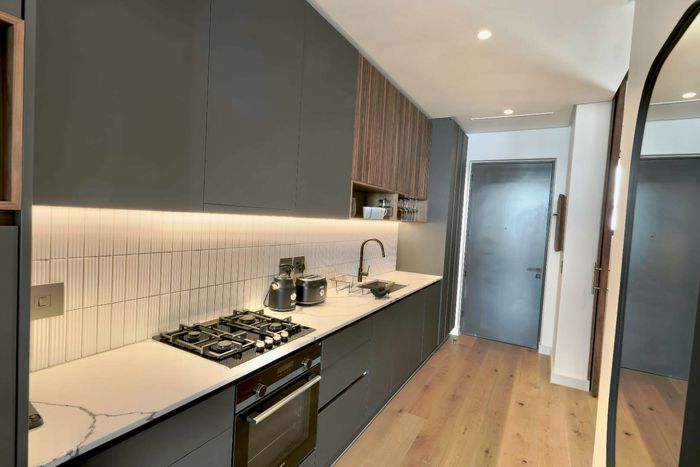 Sophisticated seaside living in Sea Point, moments from Cape Town’s best restaurants and cafés. Designer kitchen opens to a balcony with Lion’s Head views. 1 bed, 1 bath, covered parking.