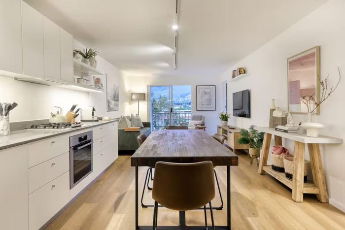 Live beneath Table Mountain in Higgovale—easy access to Camps Bay, Waterfront and Kloof Street dining. Renovated one-bedroom with equipped kitchen, enclosed balcony framing mountain and garden views, plus parking.