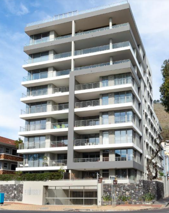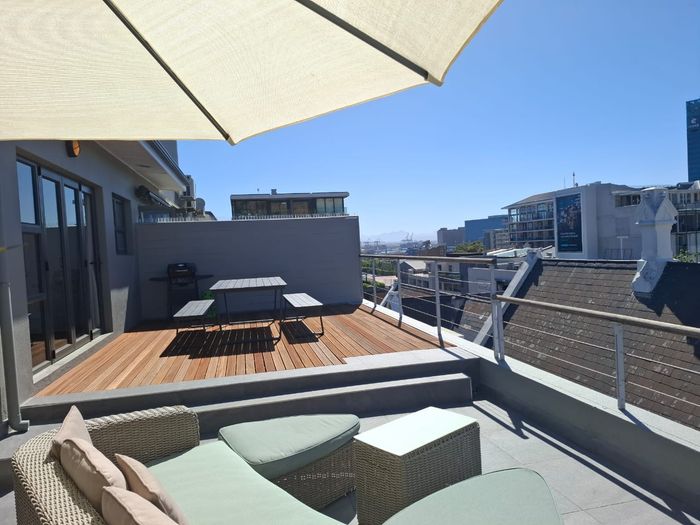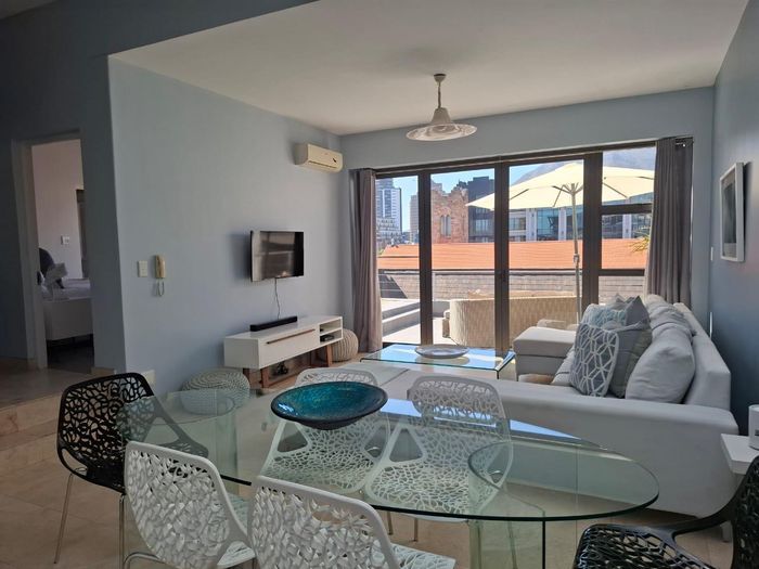 Relaxed city living with mountain vistas and central convenience; open-plan lounge and kitchen open to a double balcony. Two bedrooms, two bathrooms, secure building with one parking.