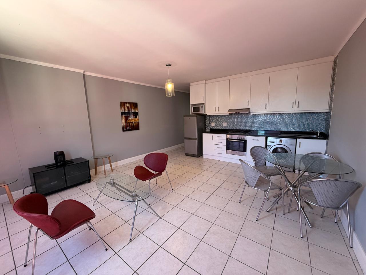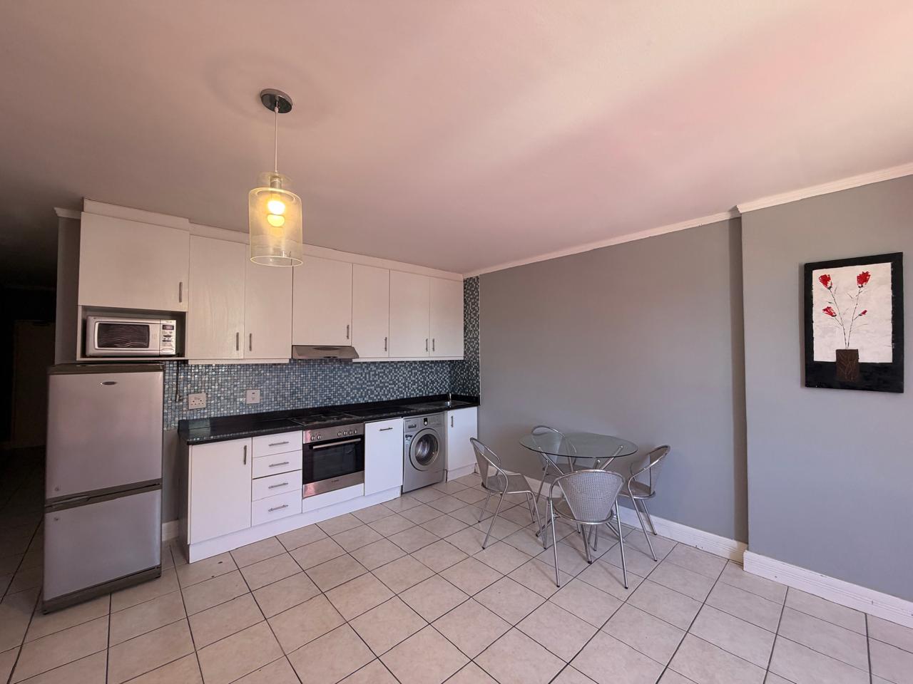 Nicely positioned apartment close the highway and also walking distance to Garden Centre, Woolworths Head office, CPUT as well as to Adderley and Long Street. The apartment is tiled throughout. Some mountain views from the lounge. Ample built in cupboards in the bedroom with an en-suite bathroom (shower). The kitchen is equipped with a washing machine, fridge and microwave. Wi fi is included while electricity is pre paid. Parking for 1 car with direct access. Suitable for a couple. A biometrics system was implemented recently for added security and peace of mind.