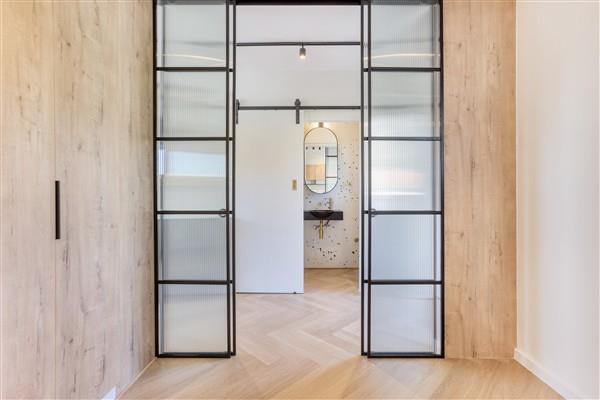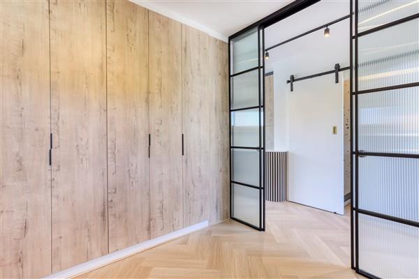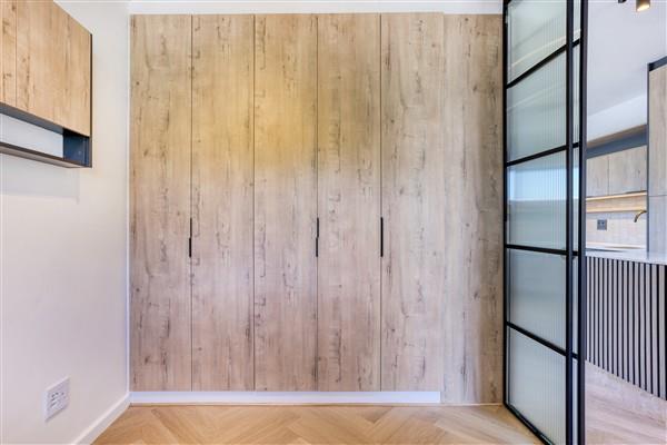 The apartment features vinyl wood-look floors and tasteful wood paneling that add warmth and character. Space-saving sliding doors maximize the area, while a chic bathroom with a modern shower enhances the living experience. Every detail has been carefully considered to provide you with a sophisticated and comfortable home.