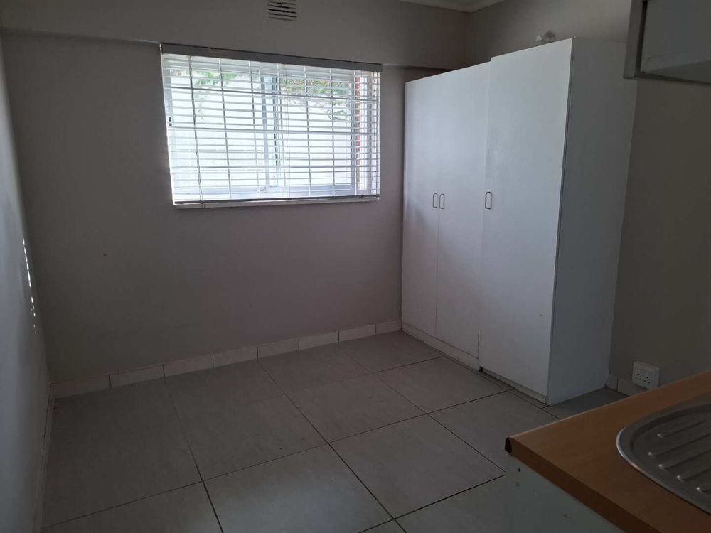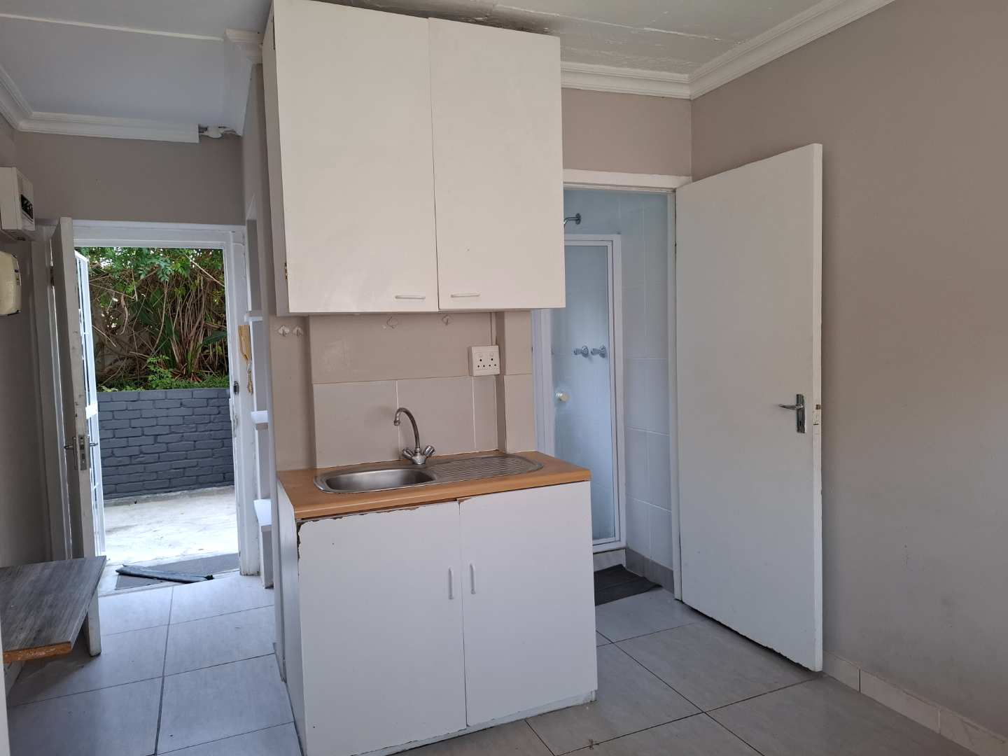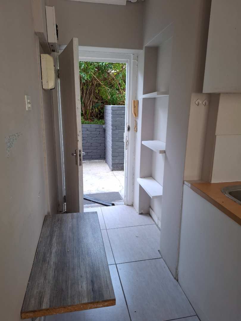 Unfurnished ground floor studio apartment. The entrance has some shelving. The studio area has built in cupboard, kitchen cupboard with sink and area size comfortable enough to fit a 3 quarter bed. The bathroom has a shower and toilet. The building is located on the public transport route.