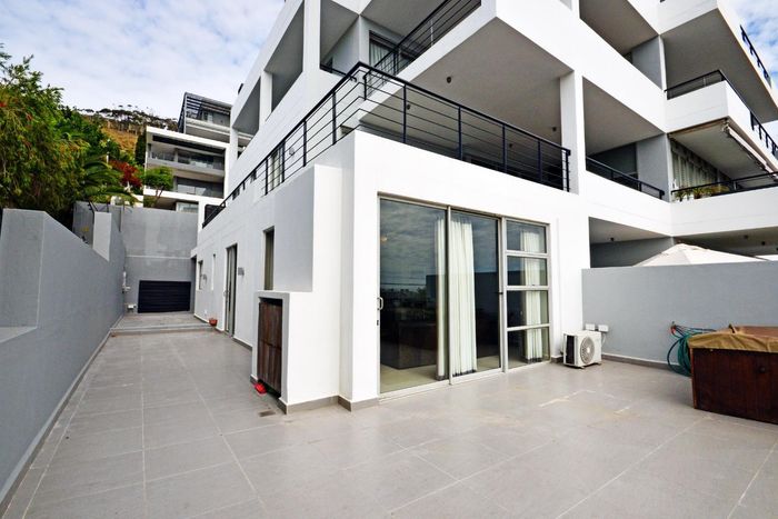 Embrace Atlantic Seaboard living in a furnished two-bedroom, two-bath apartment with a wrap-around terrace, partial sea views and private Jacuzzi — open-plan lounge and galley kitchen, street parking.
