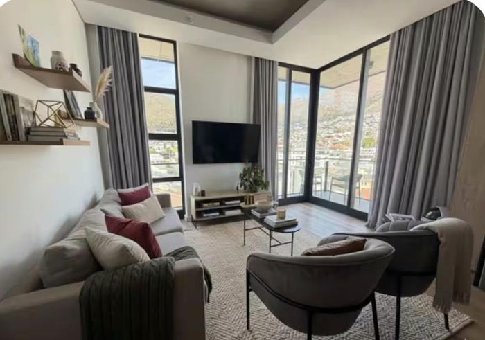 Wake up to Lion’s Head and Signal Hill views in Station House, central Cape Town living with rooftop pool, gym, and fully furnished open-plan apartment with two ensuite bedrooms.