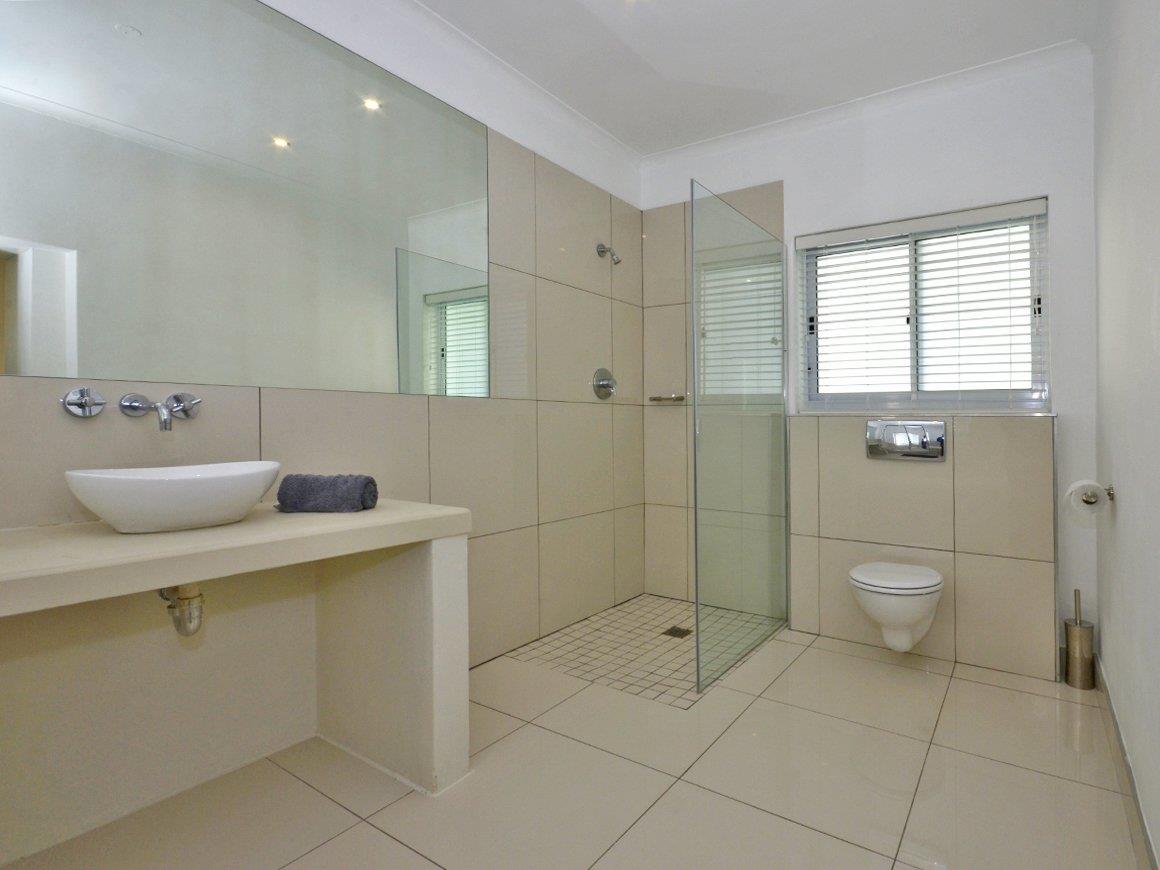 Step into an open-plan lounge, dining, and kitchen area that seamlessly extends onto a large balcony complete with a shaded awning. This inviting outdoor space is perfect for seating and al fresco dining. The main bedroom features a comfortable Queen bed and an en-suite full bathroom. The second bedroom includes two single beds, with the second bathroom offering a bath equipped with a handheld shower.