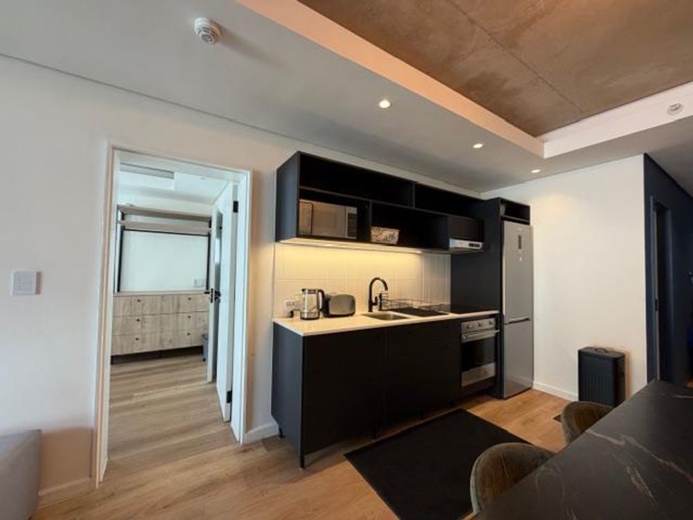 Step into a spacious open-plan living area that seamlessly integrates a lounge, dining space, and kitchen. The lounge opens onto a balcony where you can enjoy breathtaking views of Lion’s Head and Signal Hill. Ideal for relaxation or entertaining, the apartment invites you to unwind and take in the beauty of your surroundings.